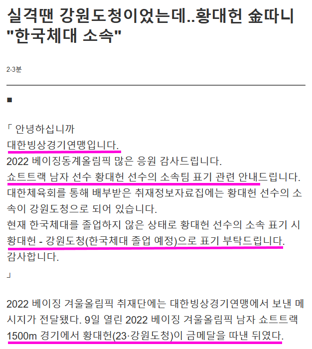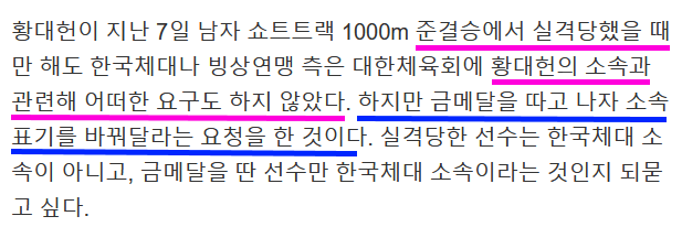 (황대헌 선수 소속 논란)