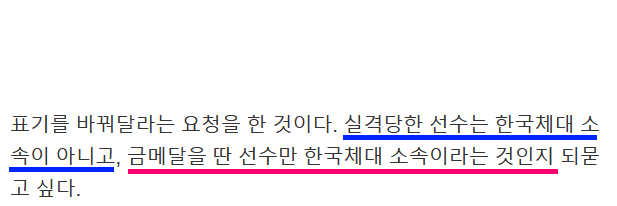 금메달을 딴 선수만 한국체대 소속인지...