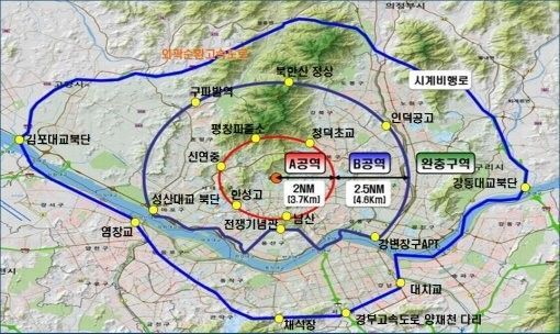 성벽처럼 둘러싼 구조의 수도권순환로는