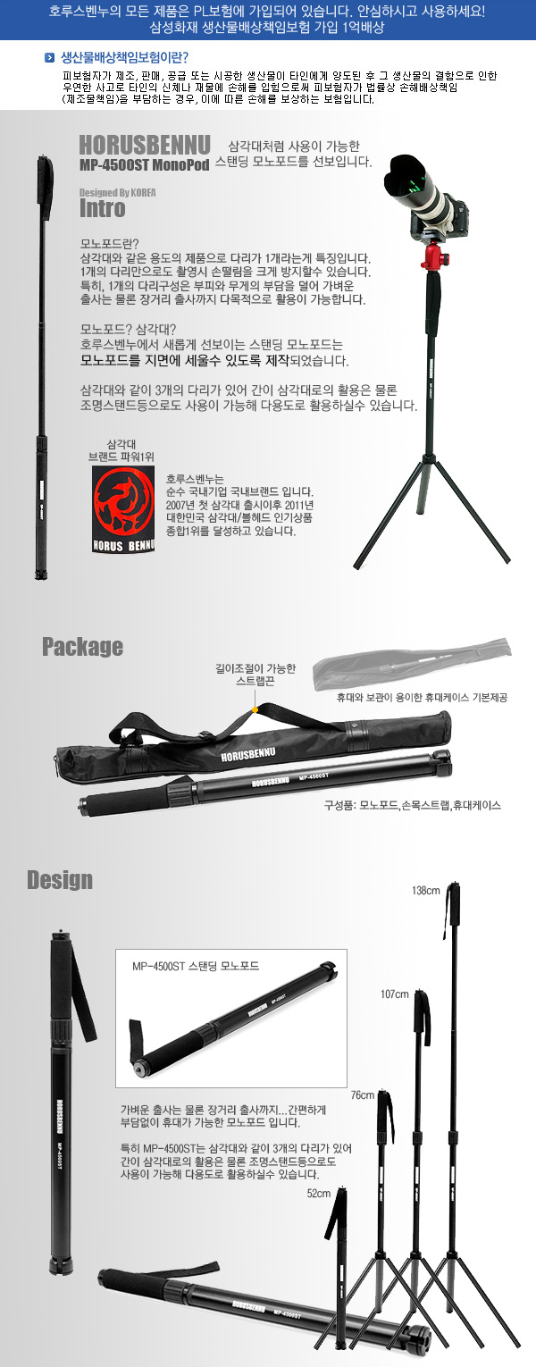 호루스벤누 MP-4500ST 스탠딩 모노포드 (3단/트위스트락/삼각대겸용)