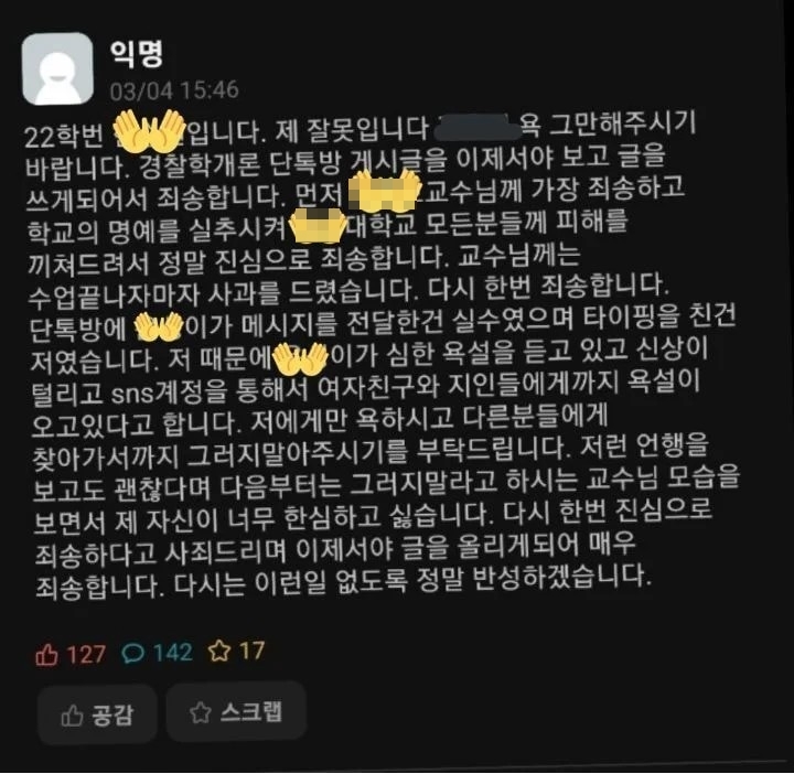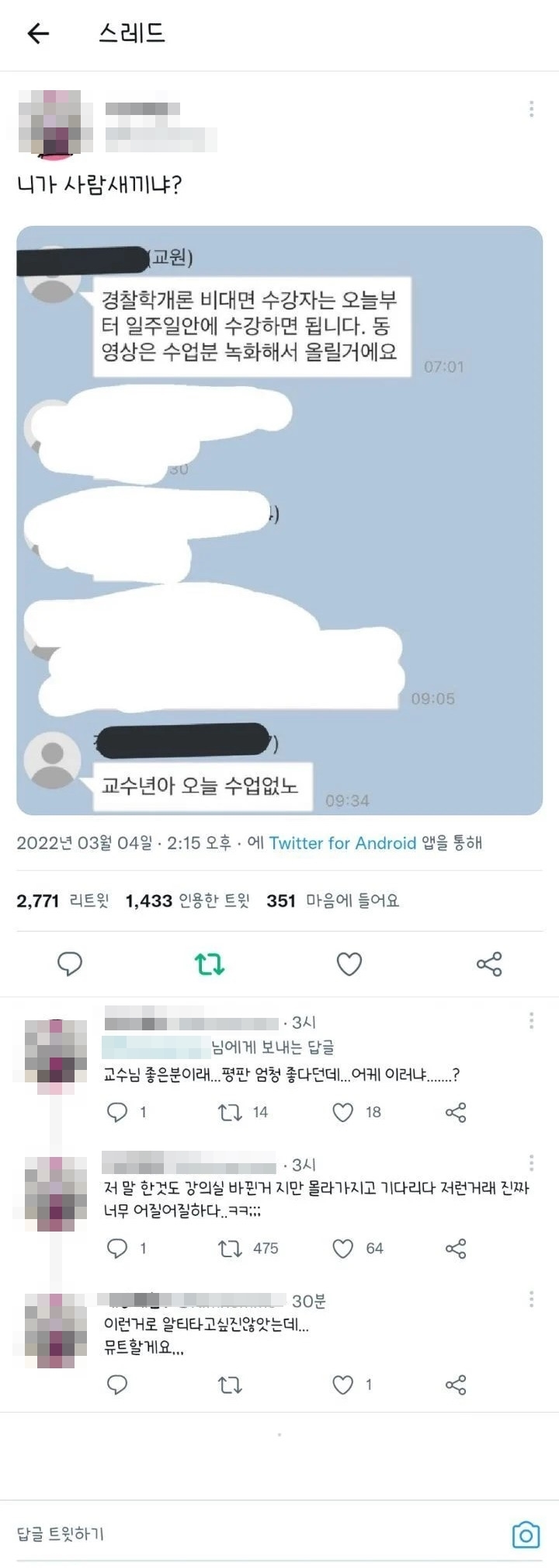 경찰이 되겠다는 학생이 교수에게 욕을....(노노노 노답..대구?)
