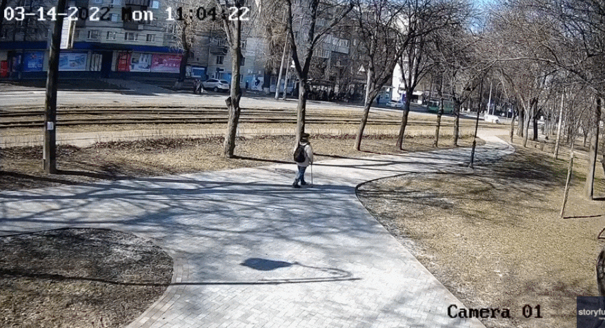 영상을 보면 길가던 노인은 무슨 소리에 놀란 듯 잠시 걸음을 멈추고