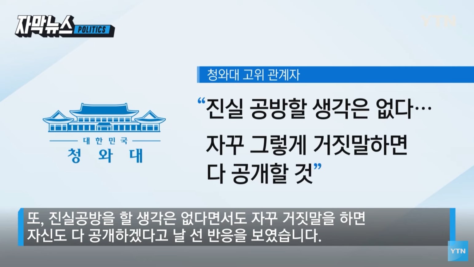 [자막뉴스] 靑 "자꾸 거짓말하면 다 공개"...신구 권력 초유의 대립 / YTN