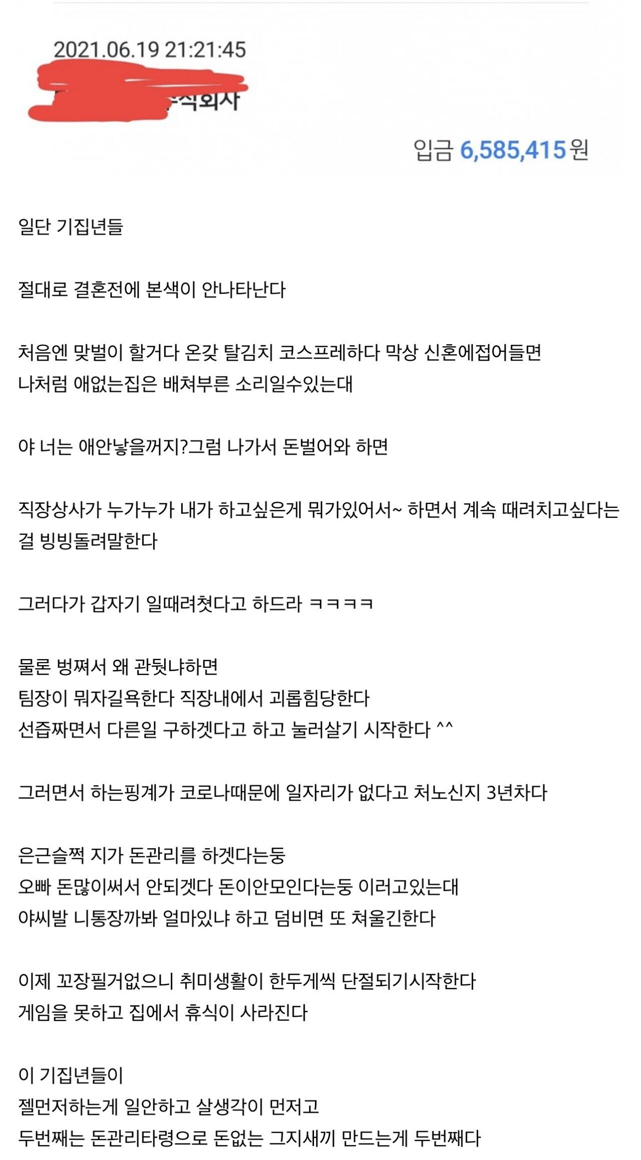 결혼하지 마라 미친년 많타 - 월 700 버는 남자의 엿같은 결혼생활