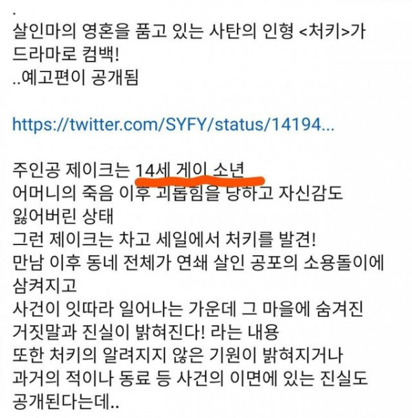 사탄의 인형 처키 2022년 다시 등장하는데.. 그만 사이코패스를 만나버렸다. 처키의 운명은 ㅋㅋㅋ