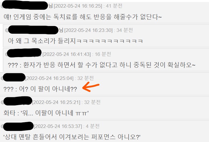게임중...중독된 팔 치료 -> 이것이 맞는 말