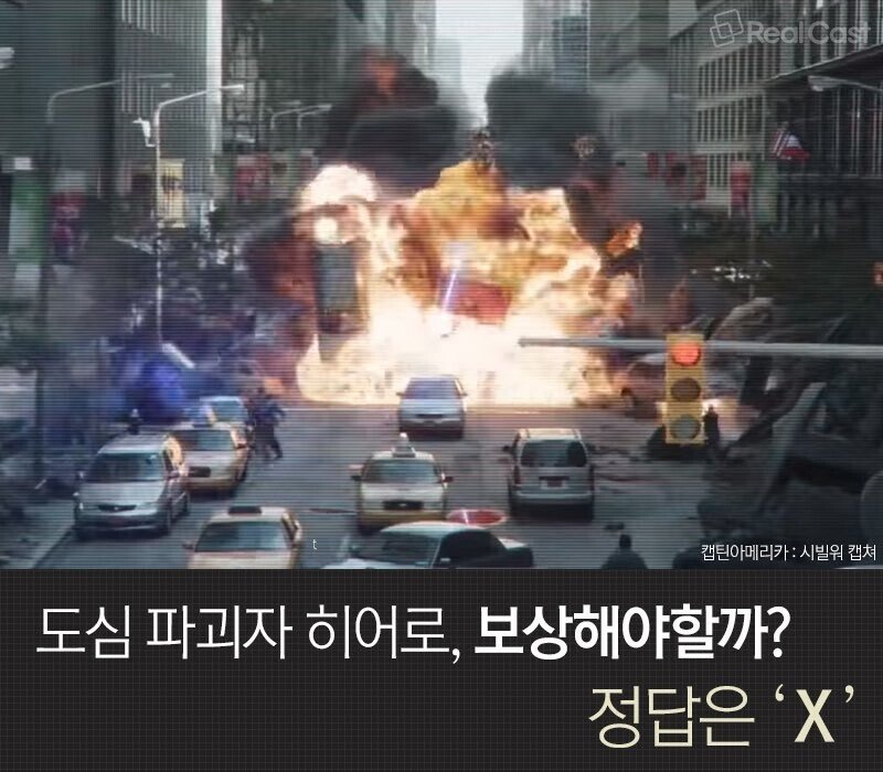 영웅이 도시를 구하다가 시민에게 피해를 주었다면 보상을 해야 할까?