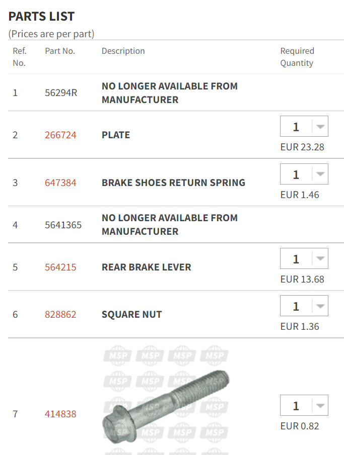 아프릴리아 SR 125 스쿠터 뒷 브레이크 라이닝 패드 정보