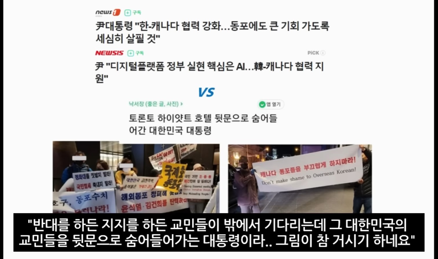 국민들을 피해서 캐나다 호텔 뒷문으로 들어간 대통령ㄷㄷ