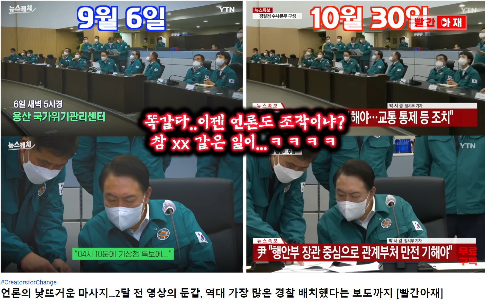 윤석열 대통령과 정부, 경찰에 책임론이 불거지자 언론은 앞다퉈 실드를 치느라 바쁜 모습입니다.