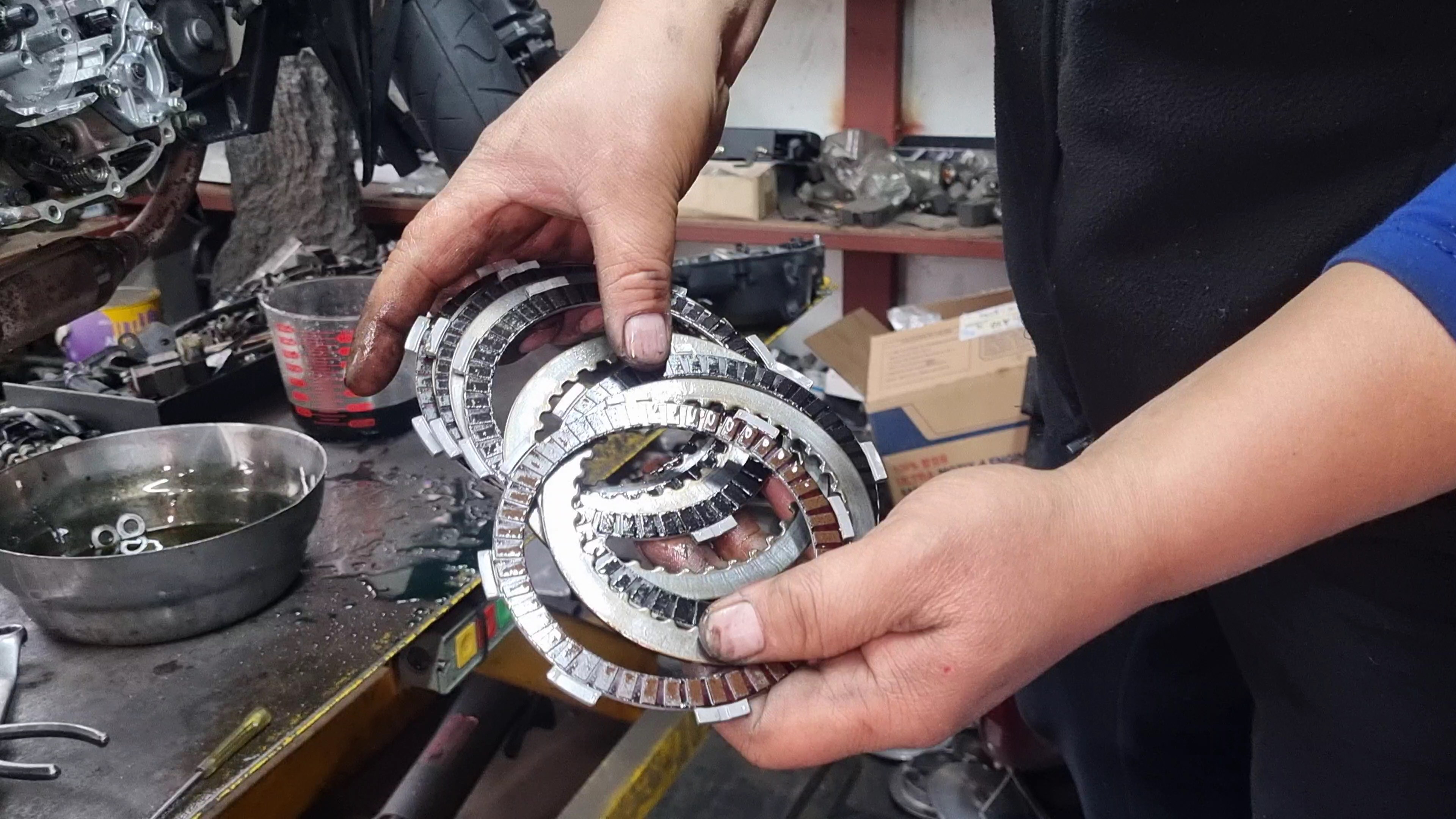 "Honda CBR125 motorcycle engine clutch disc plate replacement and coolant leak repair"