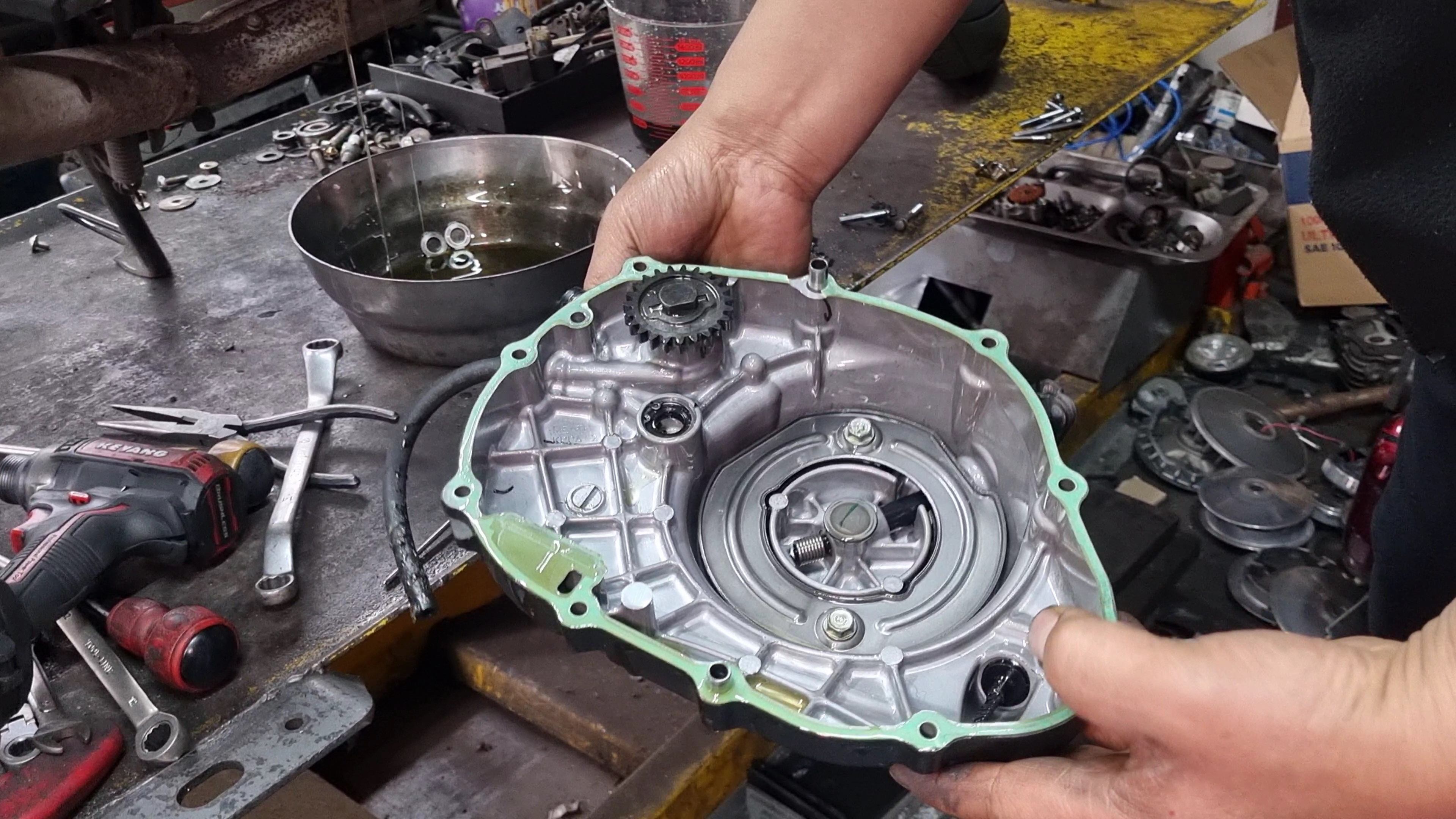 Honda CBR125 motorcycle engine clutch disc plate replacement and coolant leak repair