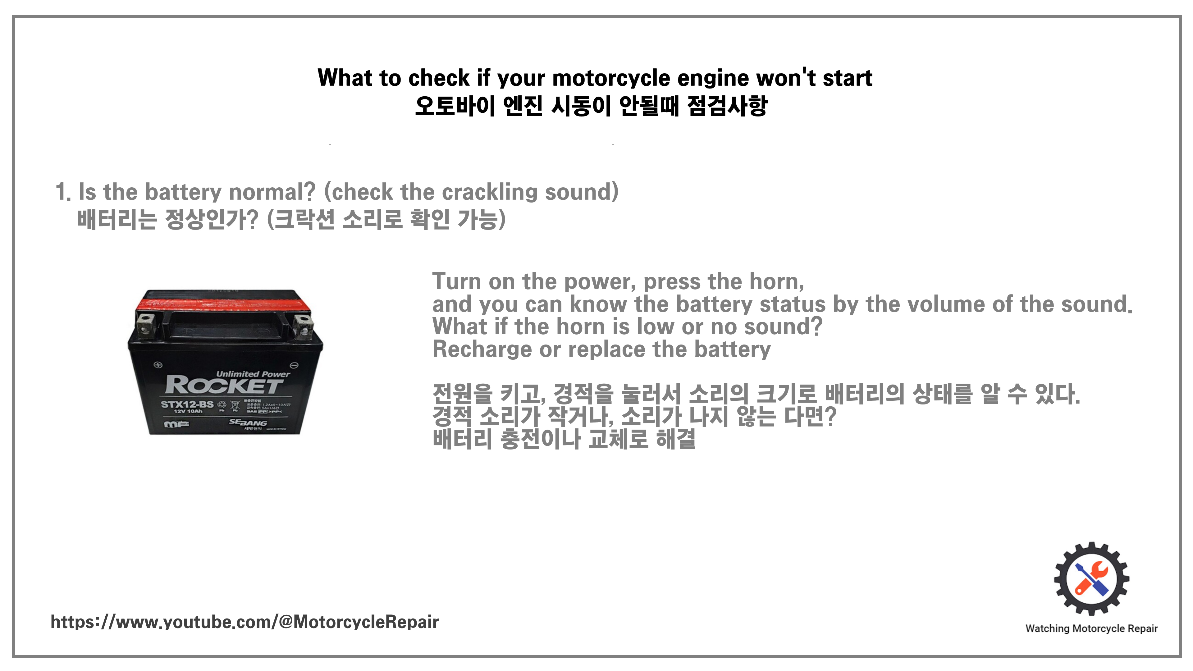 1. 배터리는 정상인가? (크락션 소리의 크기로 확인이 가능하다.)