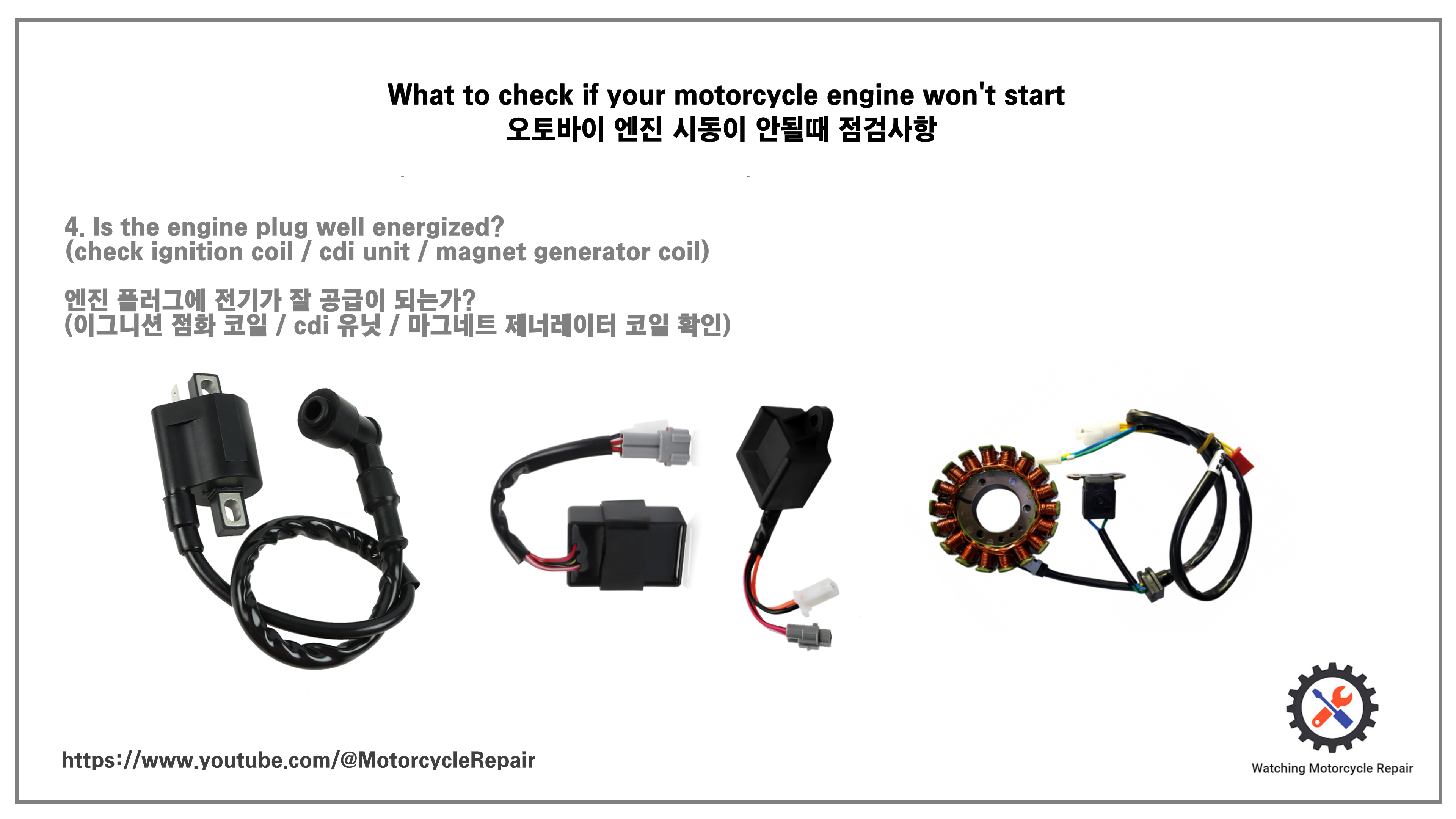 (이그니션 점화 코일 / cdi 유닛 / 마그네트 제너레이터 코일 확인)