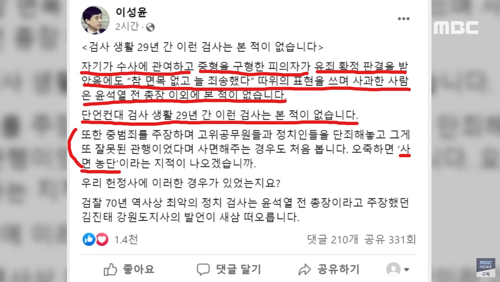 [오늘 이 뉴스] "오죽하면 '사면농단'이라고".. 윤 대통령 직격한 이성윤 (2022.12.28/MBC뉴스)
