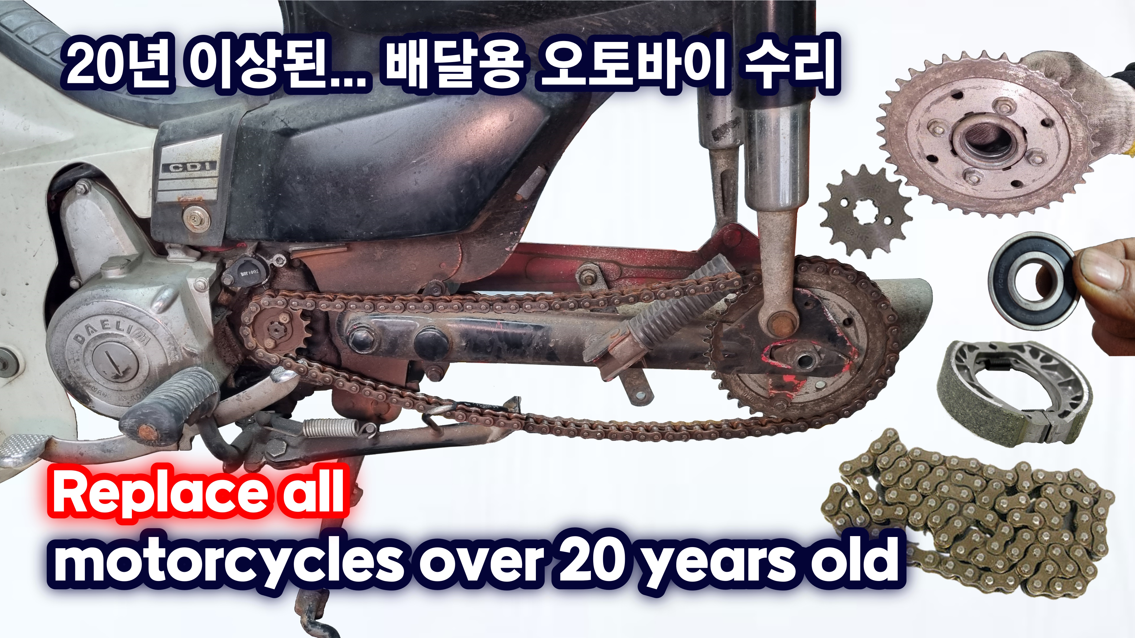 "20년이 넘은 오래된 배달 오토바이의 체인 기어 라이닝 등 구동계 모두 교체 - 대림 시티100"