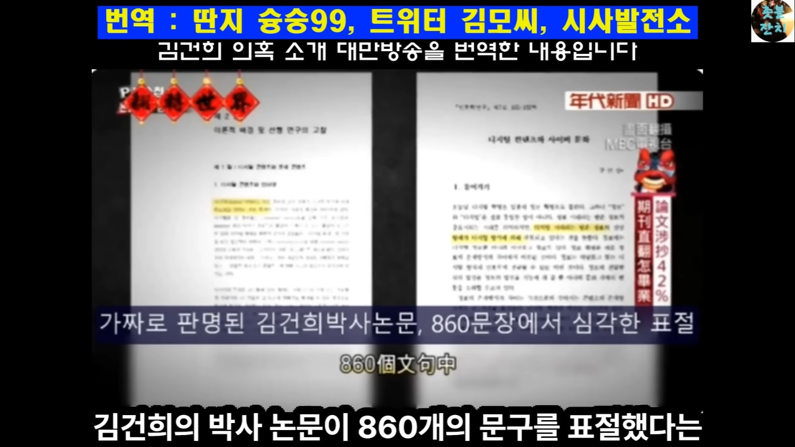 " 자기는 대방 방송의 내용을 번역해서 올린것 뿐이라고..."