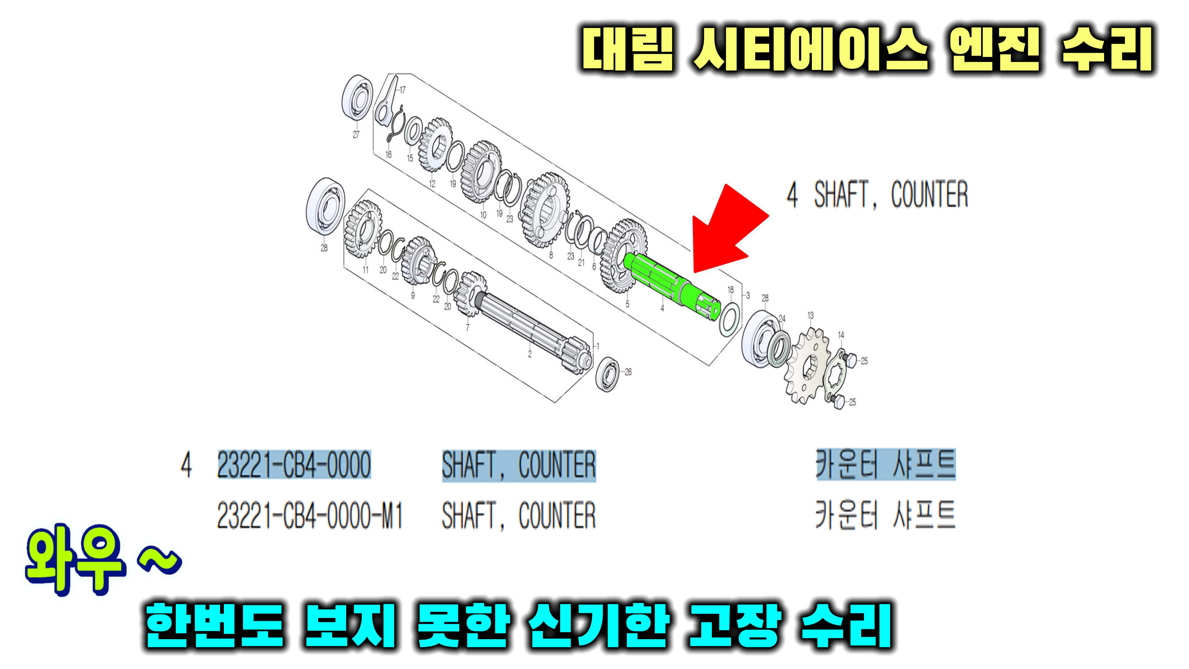 결국은 엔진을 완전히 분해하고, 엔진 트렌스미션 카운터 샤프트를 새것으로 교체해야 합니다.