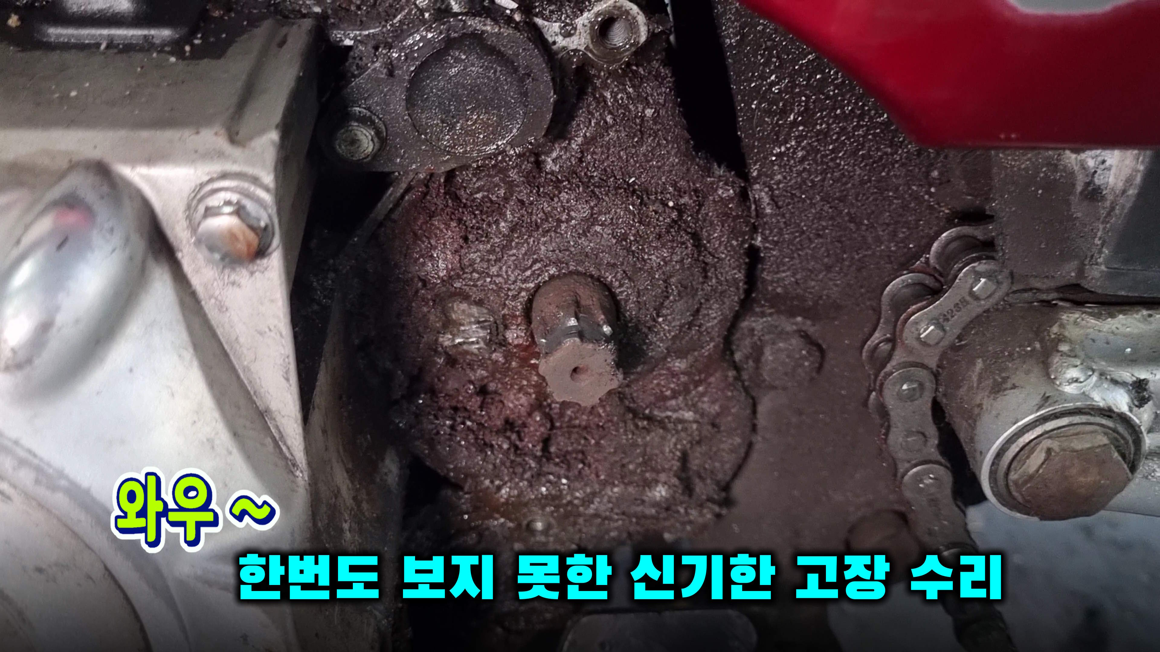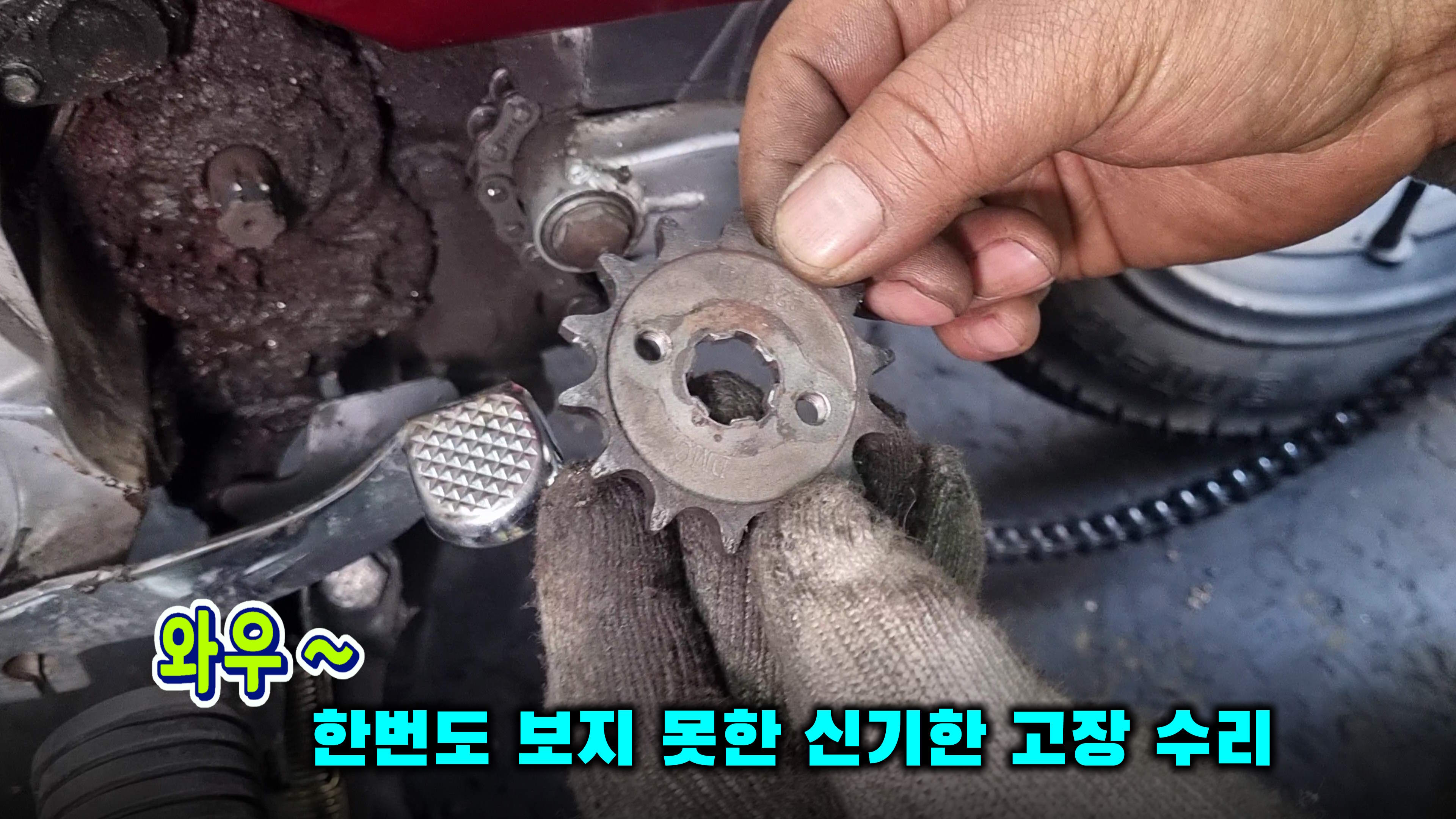 신기하네요 이런 고장은 처음 봅니다. 오토바이 체인 소기어가 회전하지 않는 놀라운 장면 ~. 오토바이 엔진 미션 수리