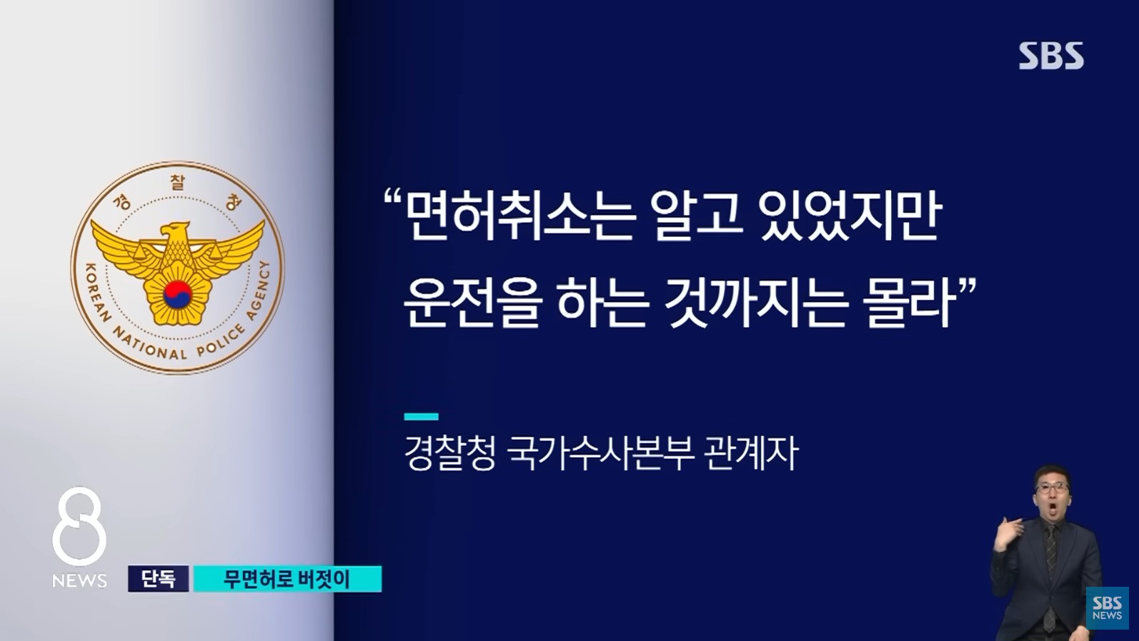 [단독] 무면허 경찰관 운전…경찰청 차단기 활짝 열렸다 / SBS 8뉴스