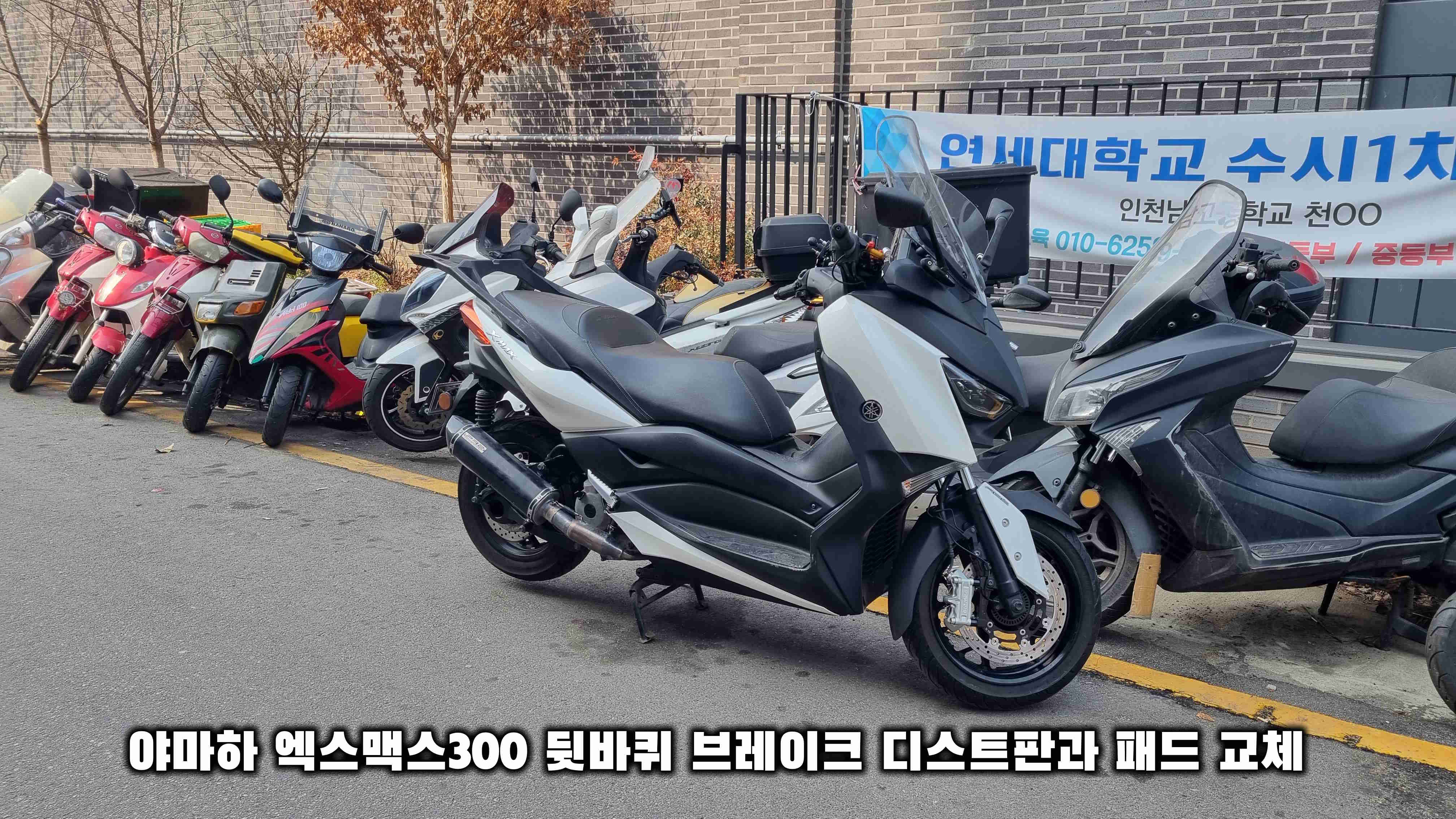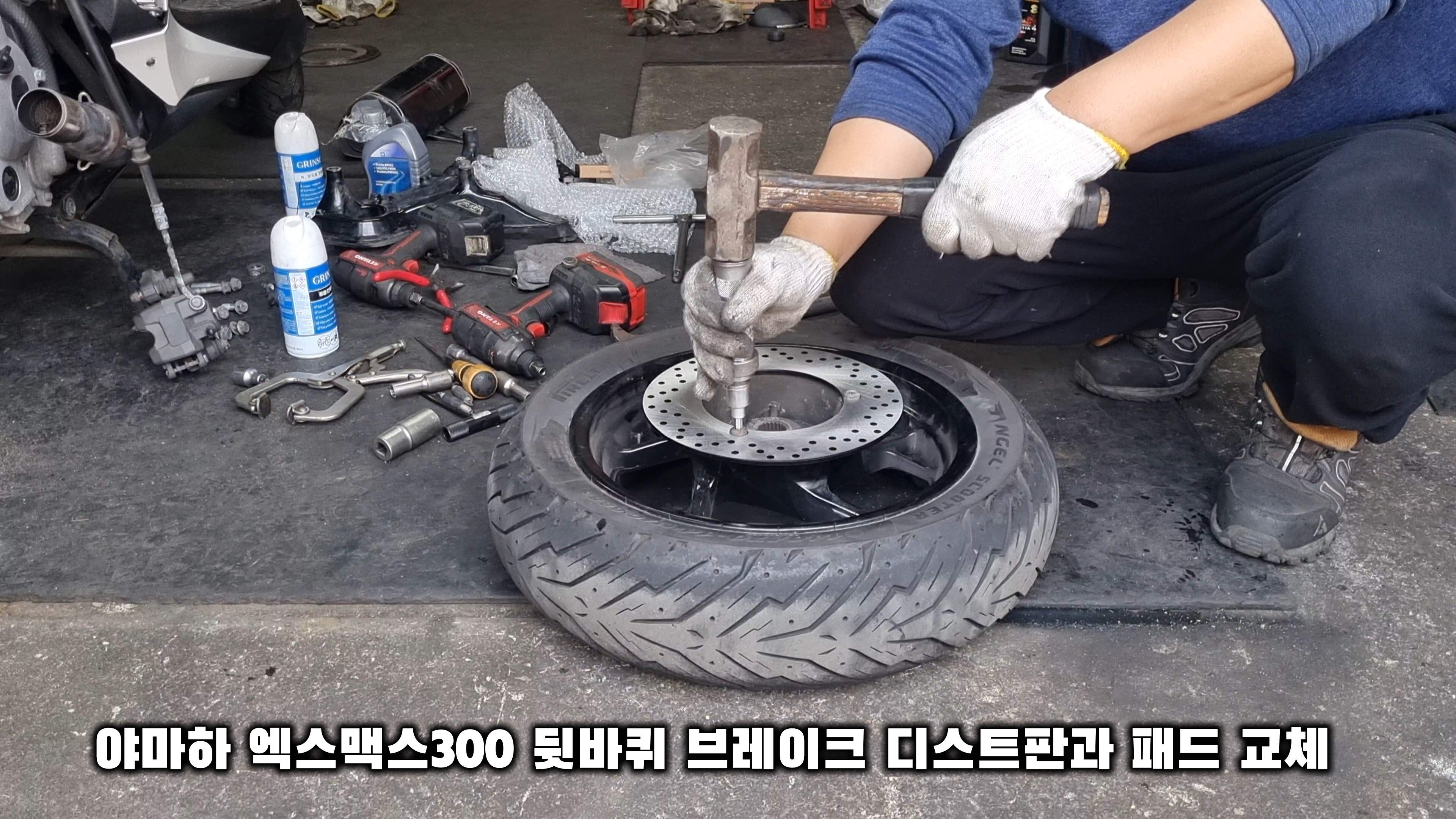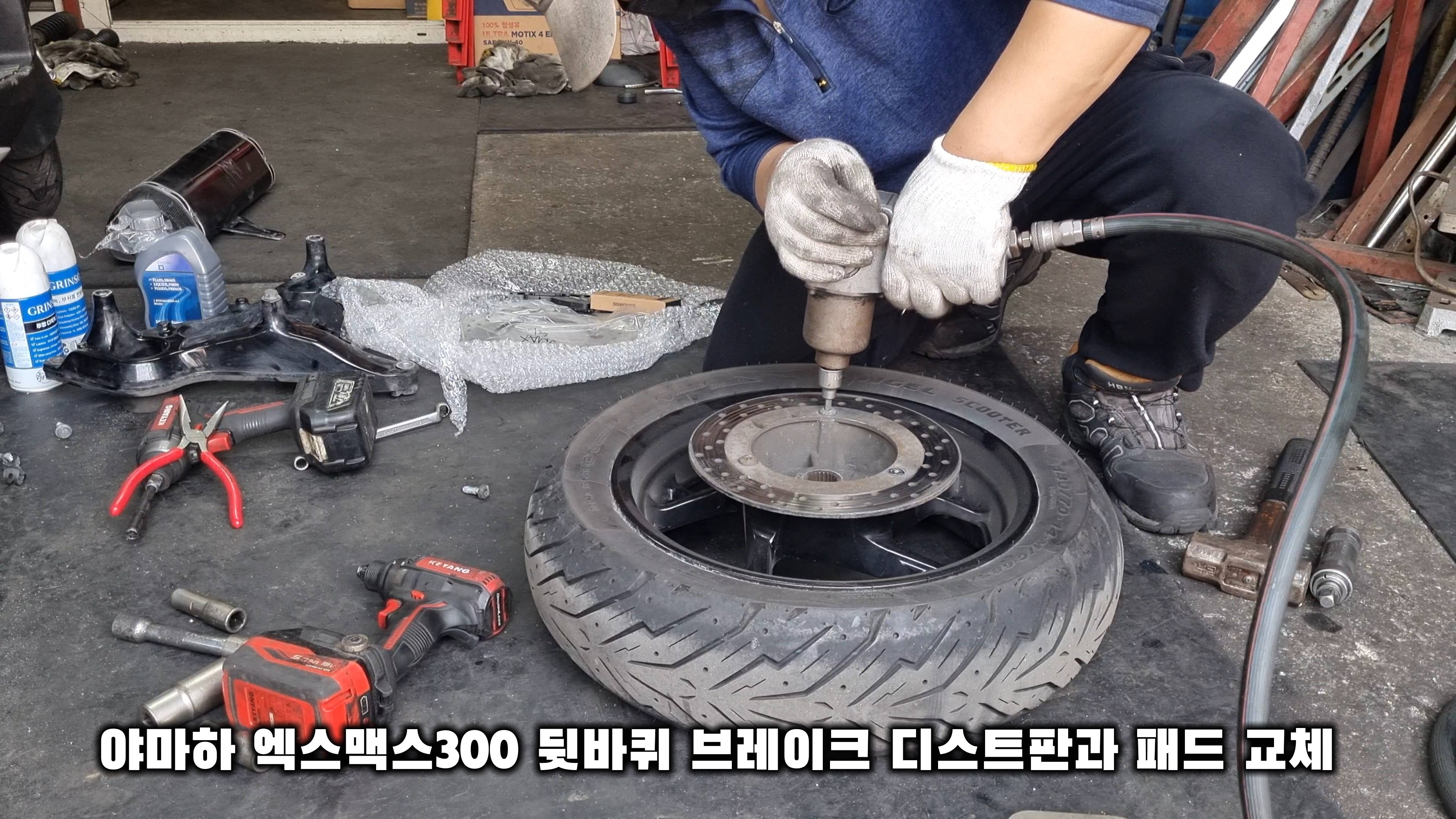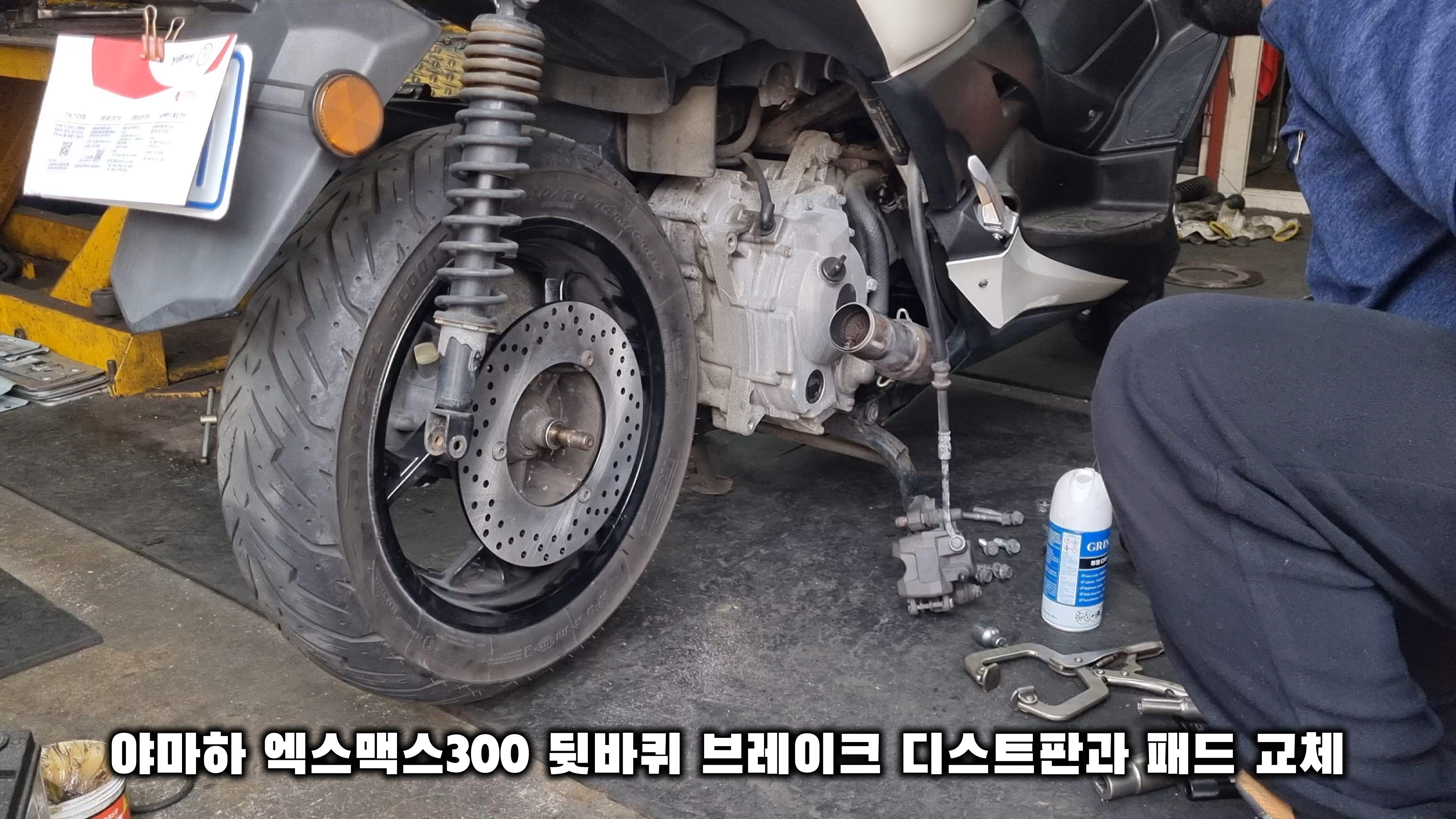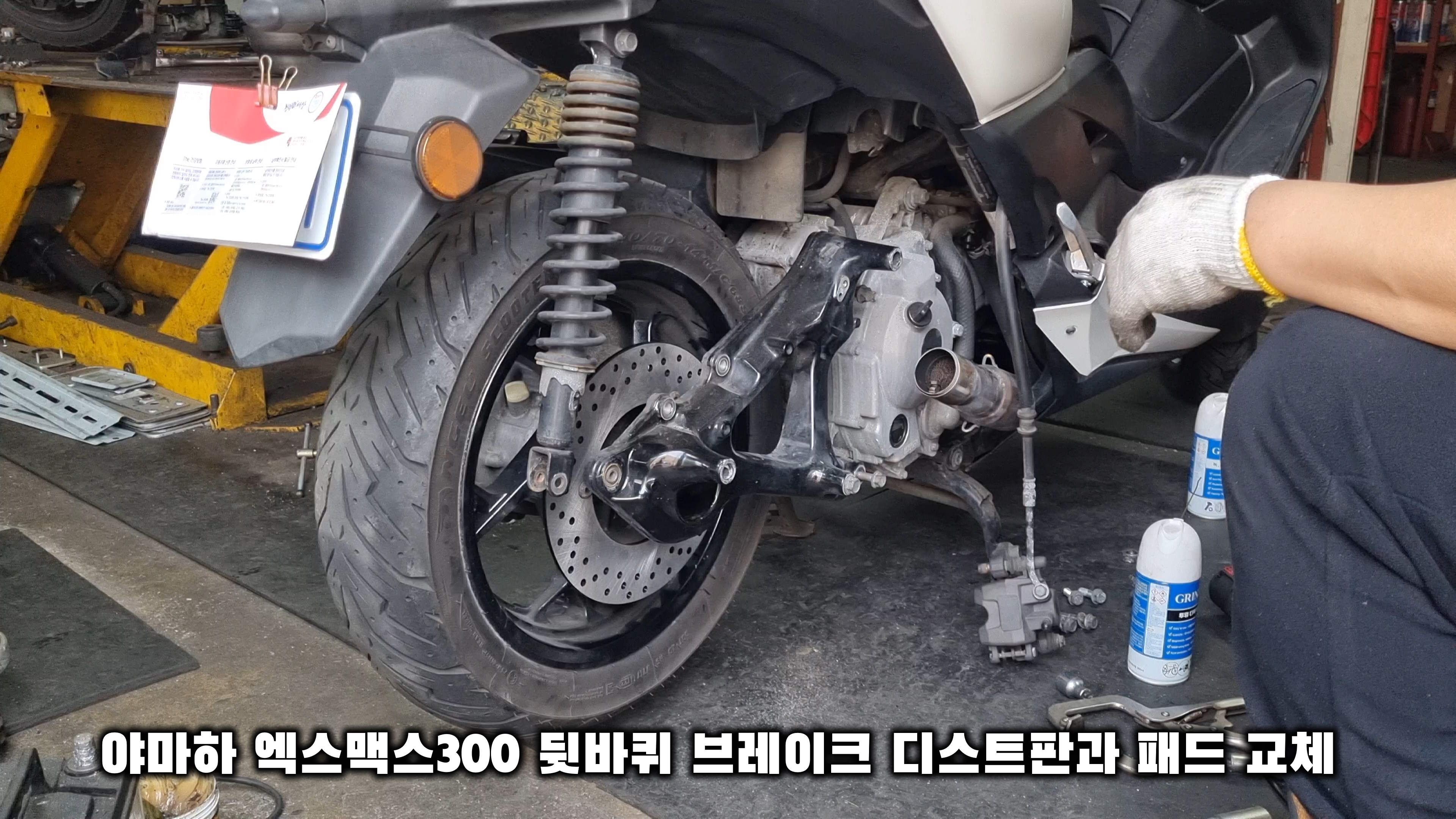 "야마하 엑스맥스300 스쿠터 뒷바퀴 브레이크 디스크판과 패드 교체"