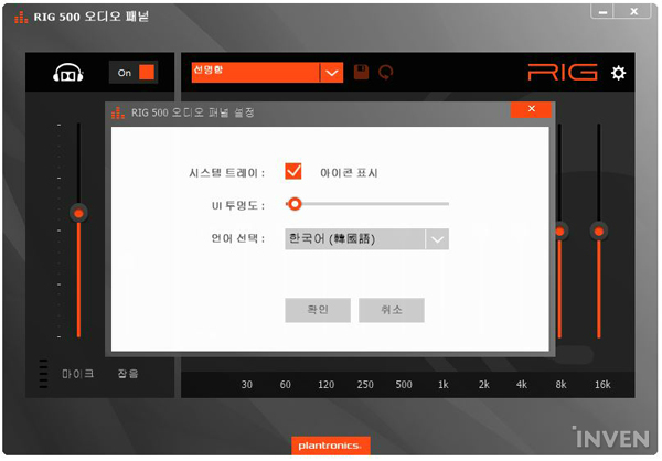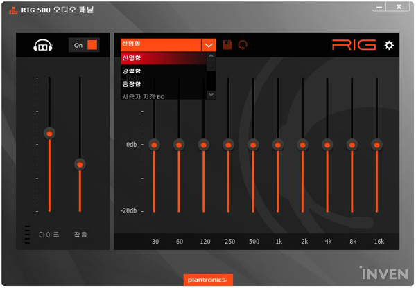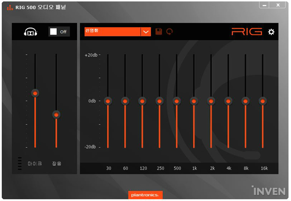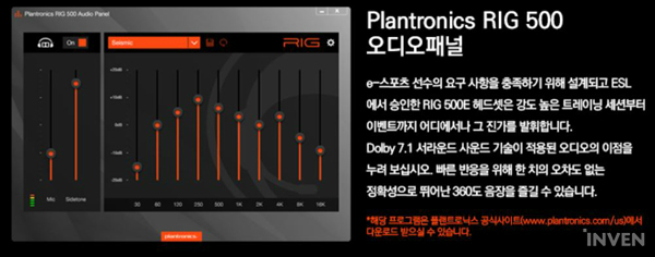 플랜트로닉스 리그 500HD 게이밍 헤드셋은 플랜트로닉스에서 제공하는 전용 소프트웨어인 'Plantronics RIG 500 오디오패널'을 지원한다. 해당 프로그램을 통해 헤드셋의 설정을 자유자재로 변경할 수 있다.