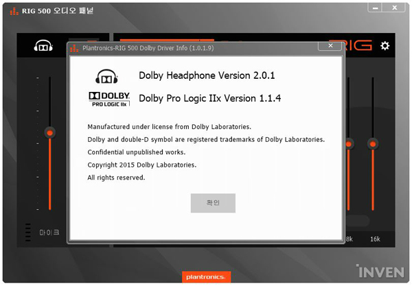 돌비로고를 클릭하면 돌비 버전에 대한 정보가 팝업된다