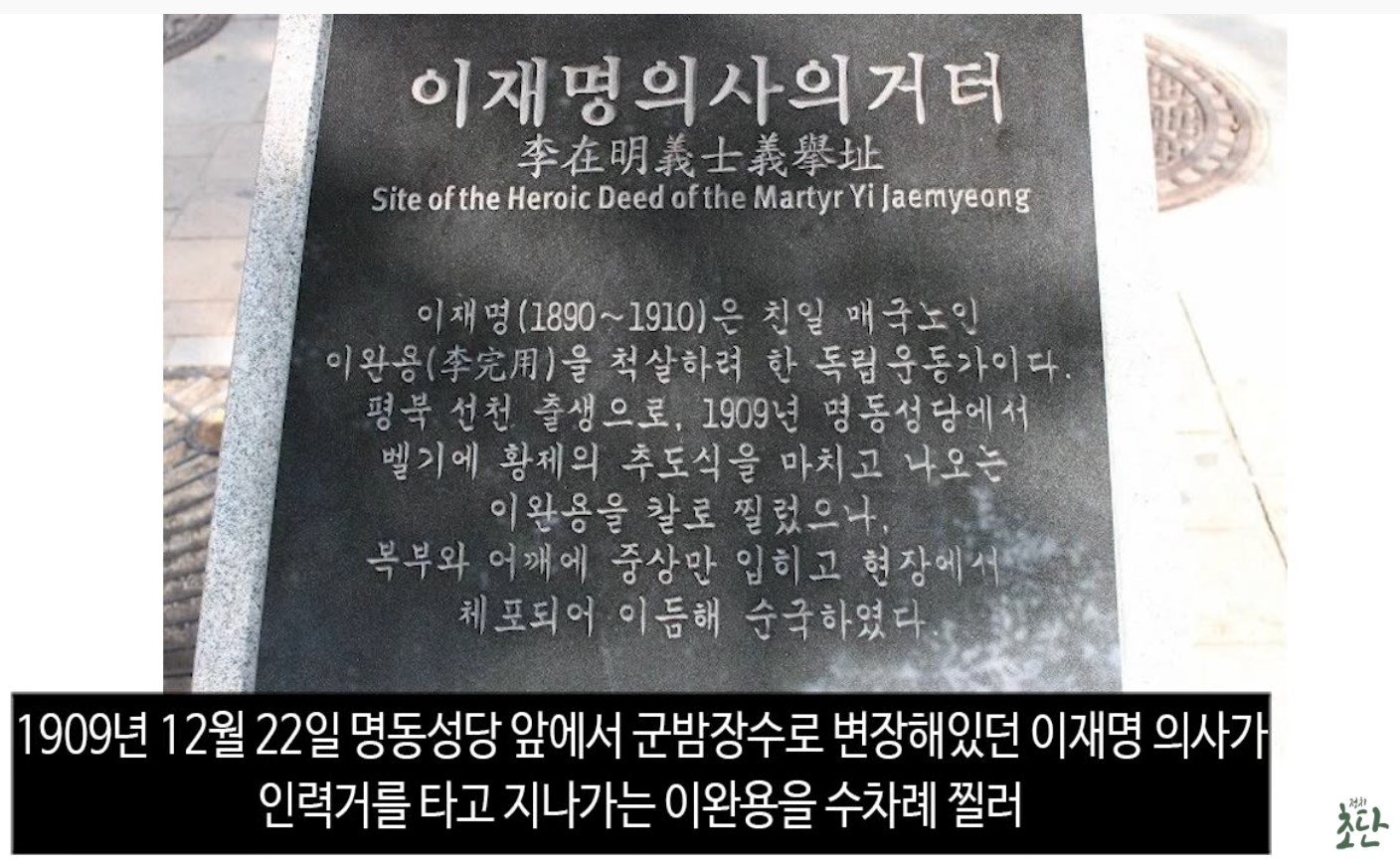 1909년 12월 22일 명동성당 앞에서 군밤장수로 변장해 있던 이재명 의사가,