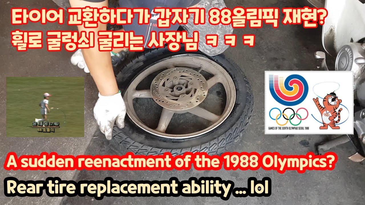 오토바이 타이어를 교환하다가 갑자기 88 서울 올림픽의 주요 장면
