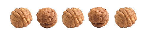 보이는 사진의 땅바닥에는 5개의 호두 과자 알맹이가 떨어져있다.