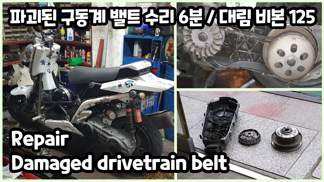대림 오토바이 비본 125cc 스쿠터 파괴된 오토바이 구동계 밸트 수리 6분 Destroyed motorcycle drivetrain belt repair 6 minutes - Daelim B ibon(B-bone) 125cc scooter