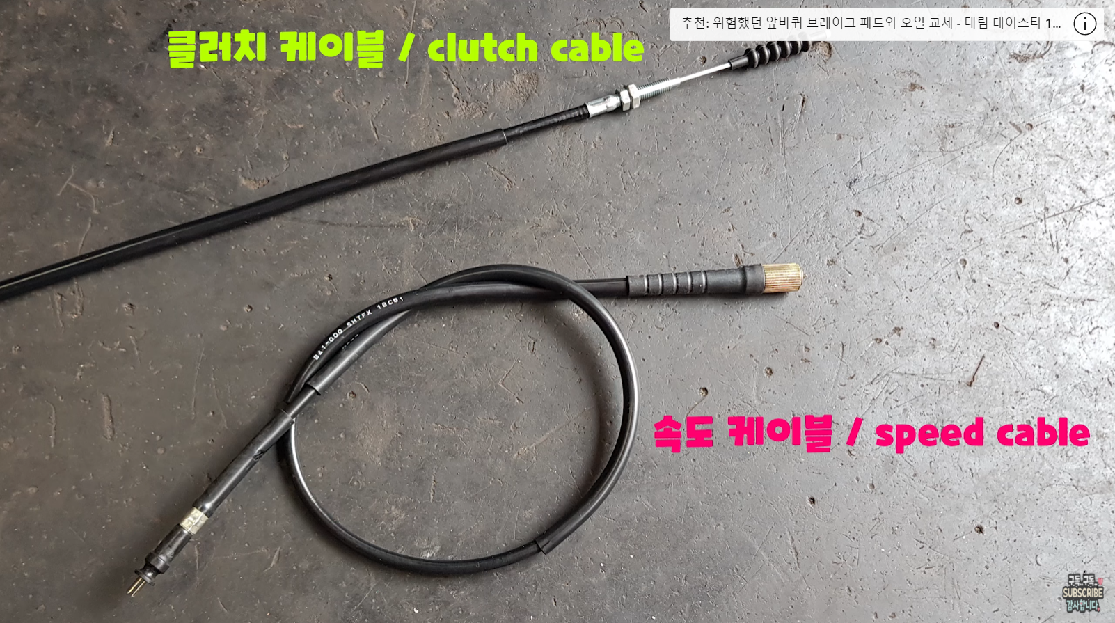 속도 케이블과 클러치 케이블을 교체하는 작업을 찍었습니다.