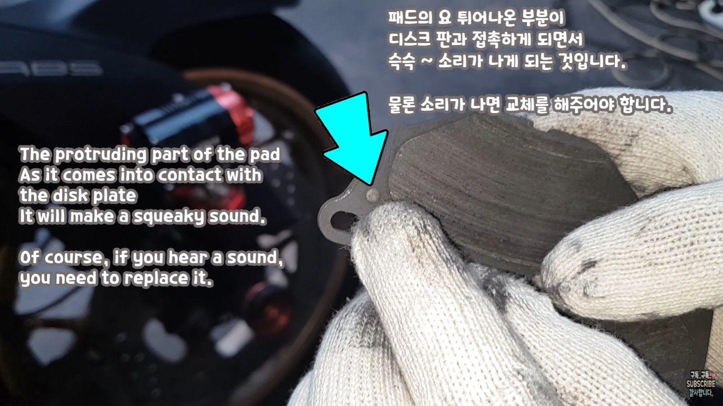 앞바퀴 디스크 브레이크 패드를 교체하는 작업을 찍은 동영상입니다.