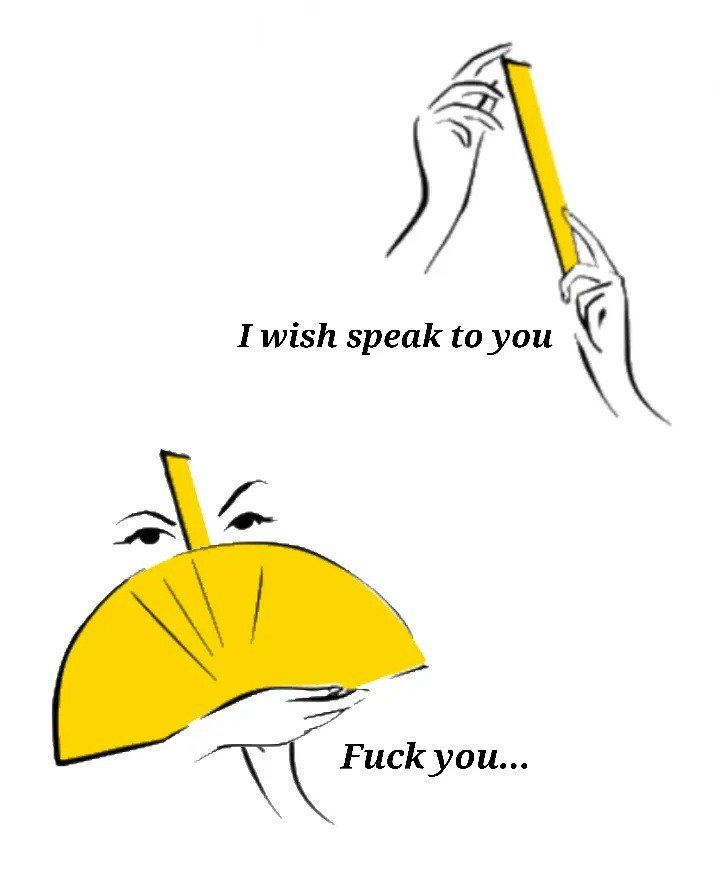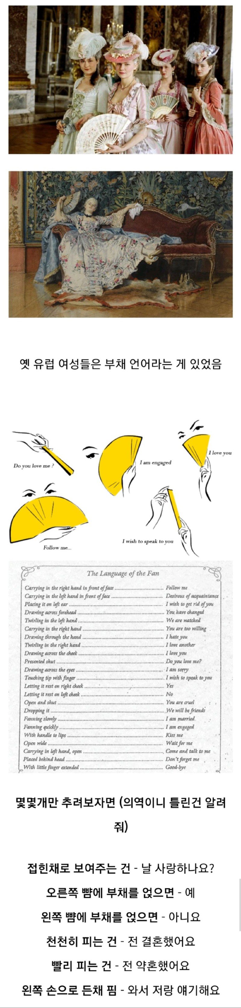남자를 유혹하는 유럽 여성들의 부채를 이용한 언어(18세기)