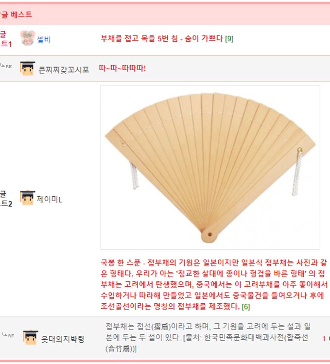 부채를 가지고, 상대에게 의도하는 신호를 주고 받았구나...