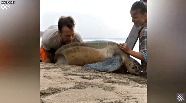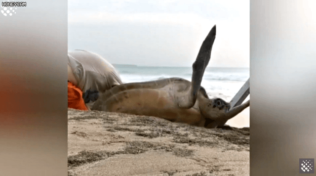 그들의 거북이 구출 장면이다.