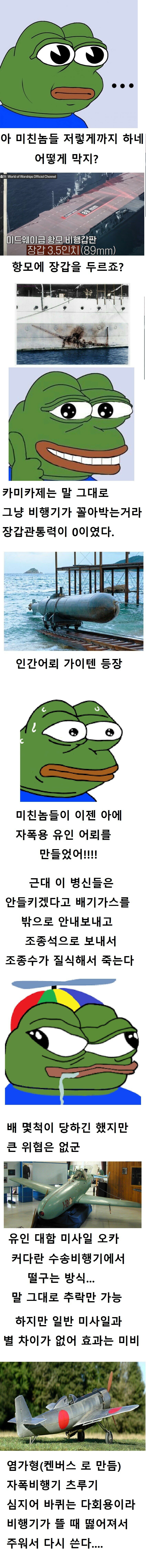 일본의 자폭용 가미가제 비행기의 자폭 장면이다.