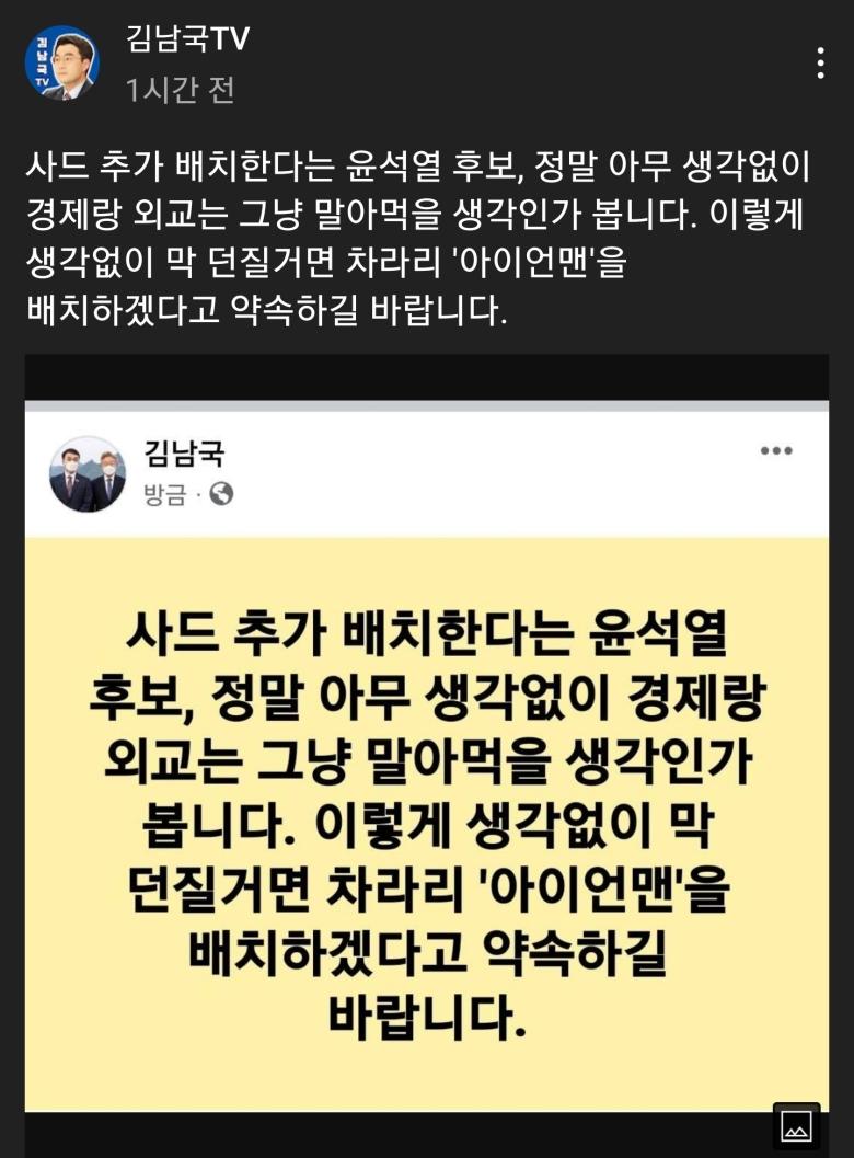 | 문재인 정권 5년 성과를 한잔의 술처럼, 한방에 보내주겠다는 사드 추가 배치 공약 ㅋㅋㅋ (0) | 2022.02.01 |