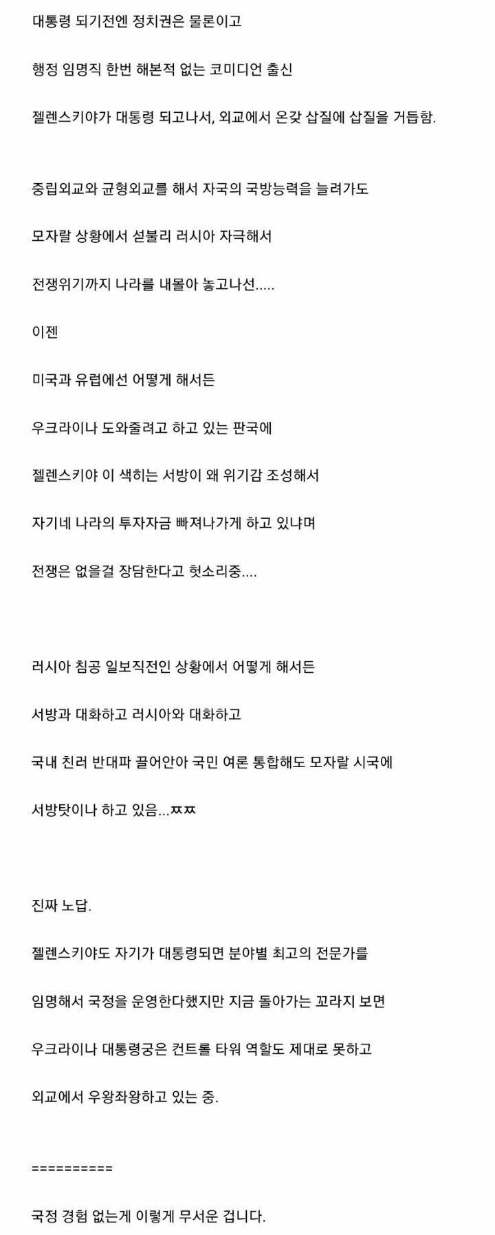 개그맨이 대통령이된 우크라이나 전쟁 위기 상태 근황 2022년 1월