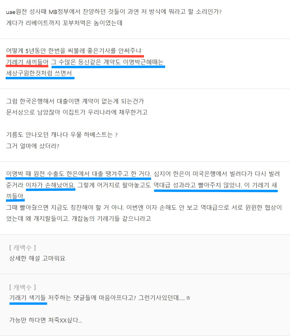 아래는 그나마 칭찬..국민들에게 희망과 자긍심을 주는 기사