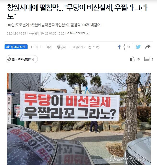 무당이 비선실세 우짤라꼬 그라노? ㅋㅋㅋㅋ(창원시내 현수막)