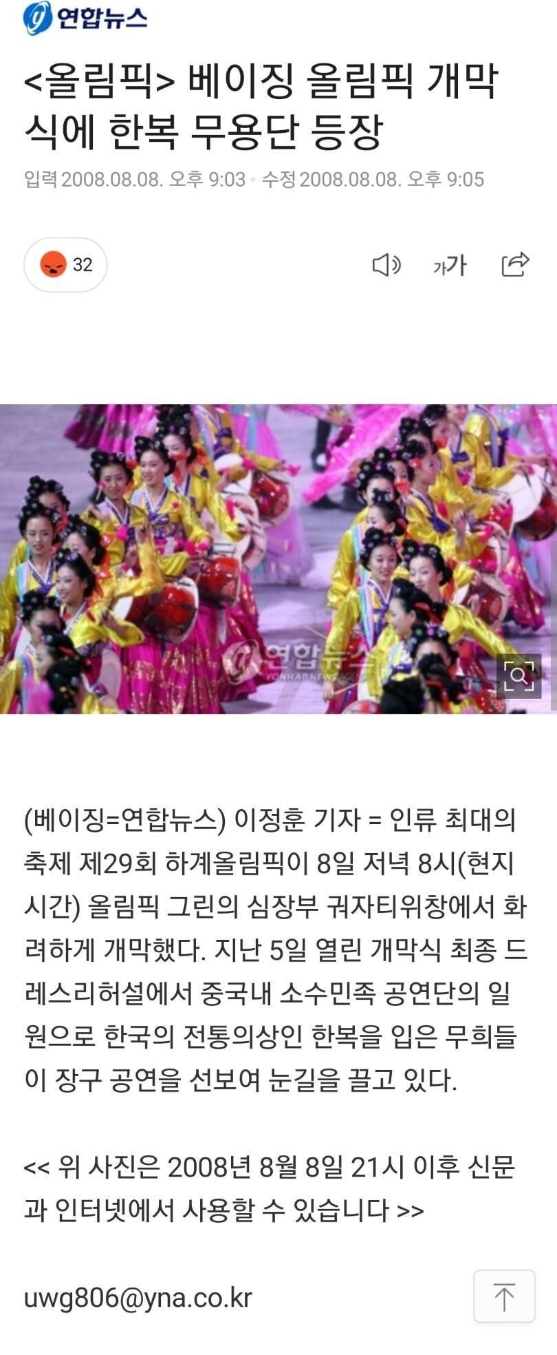 한복 외에 베이징올림픽에서 중국이 도둑질한 한국 문화