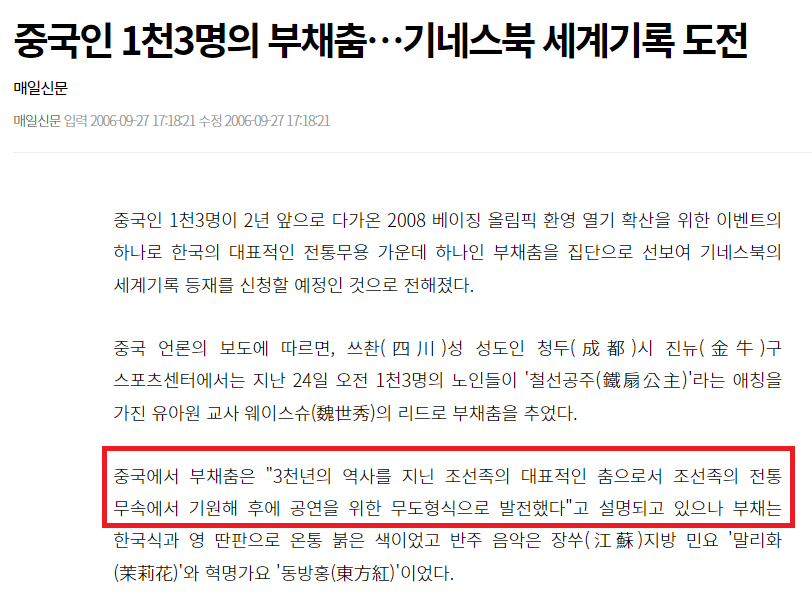 이때부터 이놈들은 모든것이 자기네 것이라고 막 가져다 쓰기 시작했다. (1954년 한국 창작물이 10년후 중국 3천년 역사가 되다니..ㅋㅋㅋㅋ)
