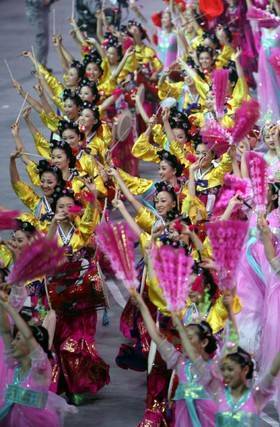 여기서 개막식 행사로 중국의 소수민족을 소개하는 공연이 있었는데