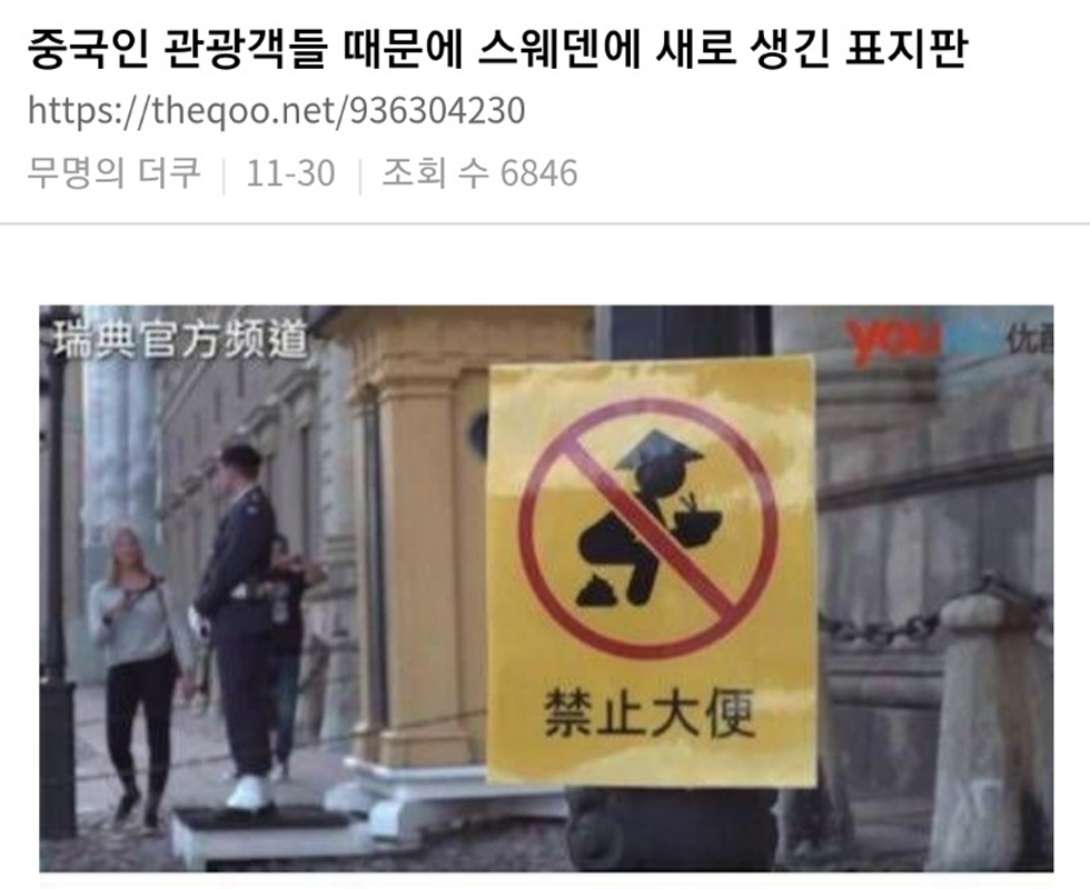 스웨덴 외에도 중국인 똥싸는 것에 대해 전세계가 골머리를 앓는 중